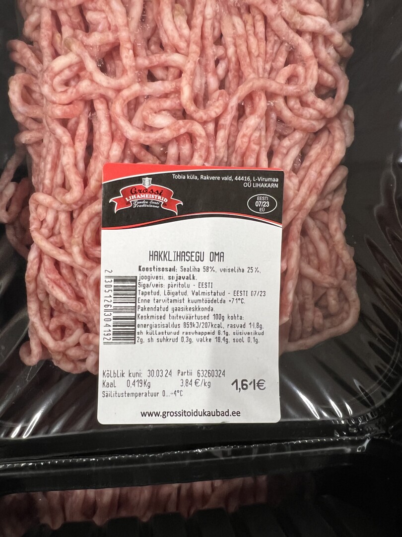 Kodune hakkliha, kg 1kg |